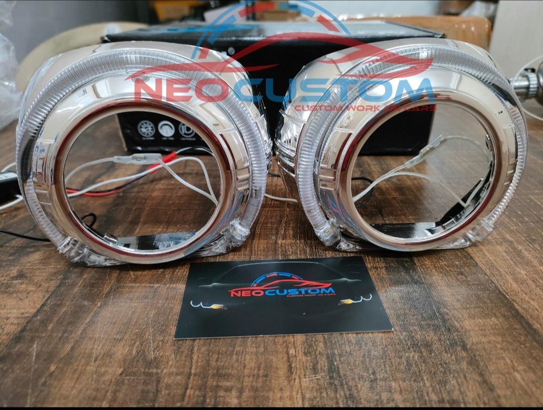 Suitable for 3' Inch Projector Lens XGY White Led Shroud Dim Parking Bright white Crome Finishing All India Shipping